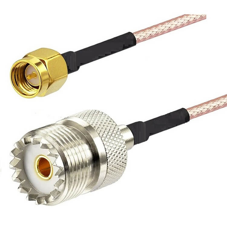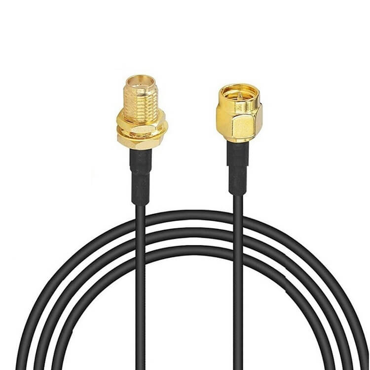 RG-316 type cable with SMA-Female connector and SMA-Male-Inverted connector. The purpose of this cable is as a gender adapter when combined with an SMA-Male or SMA-Female-Inverted cable. As a result of this combination, a cable with the appropriate connectors for connection to a wireless 802.11 peripheral can be obtained. 20cm cable length. The gain loss of RG-316 cable is 1.5 dB/m, and therefore the actual loss for this length is 0.3 dB.
